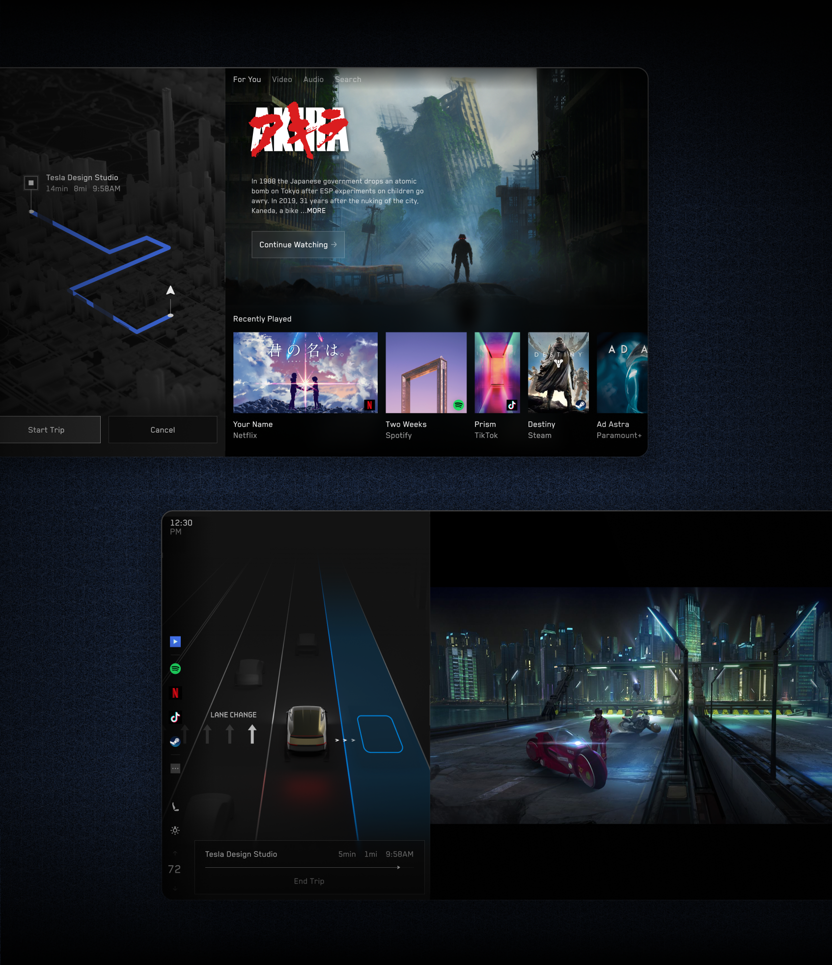 Worked on an end-to-end secret project: created an innovative user flow and interfaces for the upcoming product, covering both mobile and vehicle software; Designed media part for Cybertruck, aligning with Tesla's vision and brand.